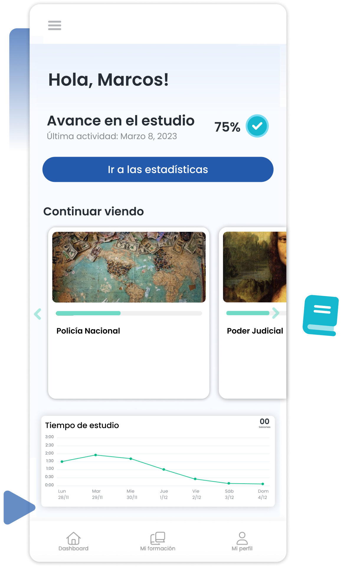 Podrás conocer tu progresión en los estudios en cualquier momento, gracias a un completo sistema de estadísticas acerca de las tareas, exámenes y temas estudiados.